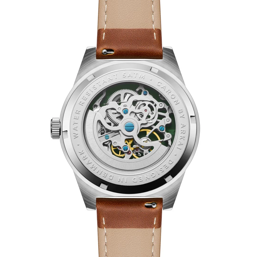 La montre Caron modernise le design des montres squelettes classiques. Son cadran translucide facilite la lecture de l’heure d’un seul coup d’œil, tout en vous donnant un aperçu de son mécanisme interne. Mêlant de magnifiques tonalités vert et argent, elle donnera une touche printanière à toutes vos tenues, partout où vous irez.
