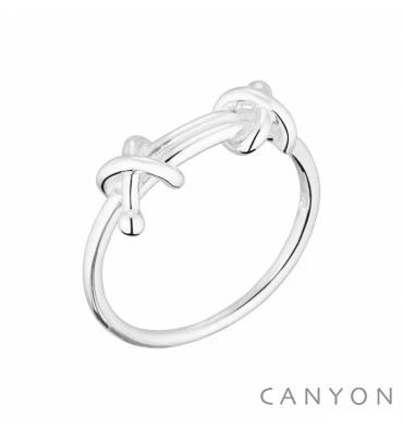 Bague signée CANYON France composée d’un fils qui se croise et qui forme 2 boucles devant qui se finissent par une boule.