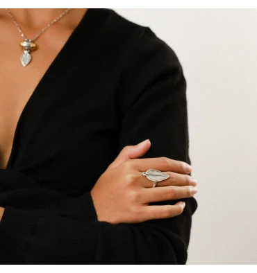 Bague ajustable signée ORI TAO bijoux. La bague ajustable appartient à la collection Andaman d’ORI TAO. Les bijoux de la collection Andaman offrent une jolie combinaison de formes organiques pour un style d’inspiration indonésienne..