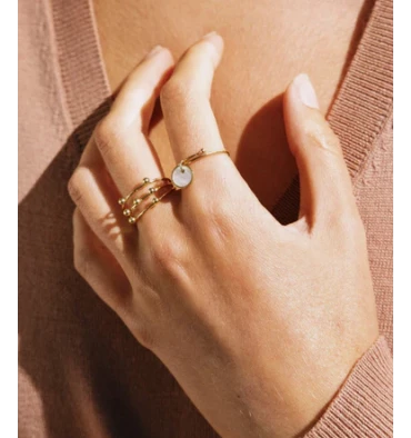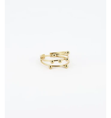 Bague Aste ajustable signée ZAG Bijoux ornée de rangs perlés dorés.