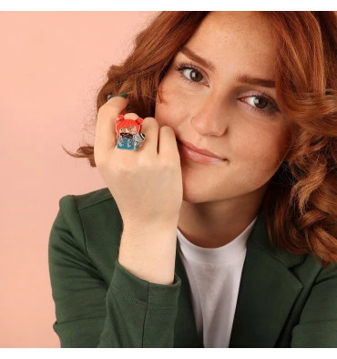 Bague rouquine ajustable signée TARATATA bijoux, convient aux tailles allant de 53 à 61.