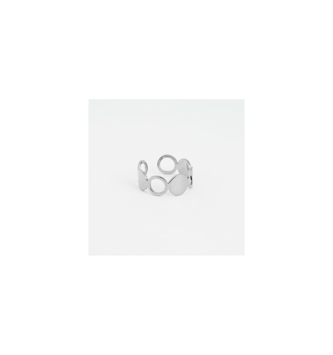 Bague ajustable signée ZAG Bijoux composée de cercles pleins et évidés.