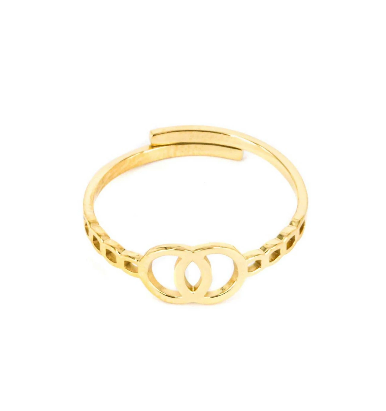 Bague ajustable signée ZAG Bijoux composée de cercles entrelacés.
