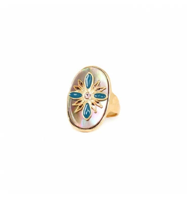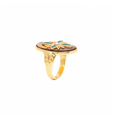 Bague ajustable Nacre Brune signée FRANCK HERVAL.