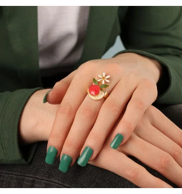 Bague ajustable Basilic signée TARATATA bijoux, convient aux tailles allant de 51 à 62.