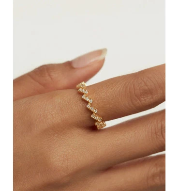 Bague Zigzag The Zipper signée PDPAOLA. Les essentiels représentent la simplicité dans toute sa splendeur. Des bijoux intemporels aux lignes épurées décorées de zircons blancs étincelants. Des bijoux sans prétention, parfaits pour le quotidien, mais qui peuvent également fonctionner pour les grandes occasions.