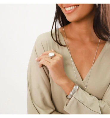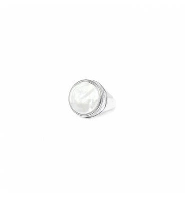 Bague signée ORI TAO bijoux ornée de Nacre blanche.