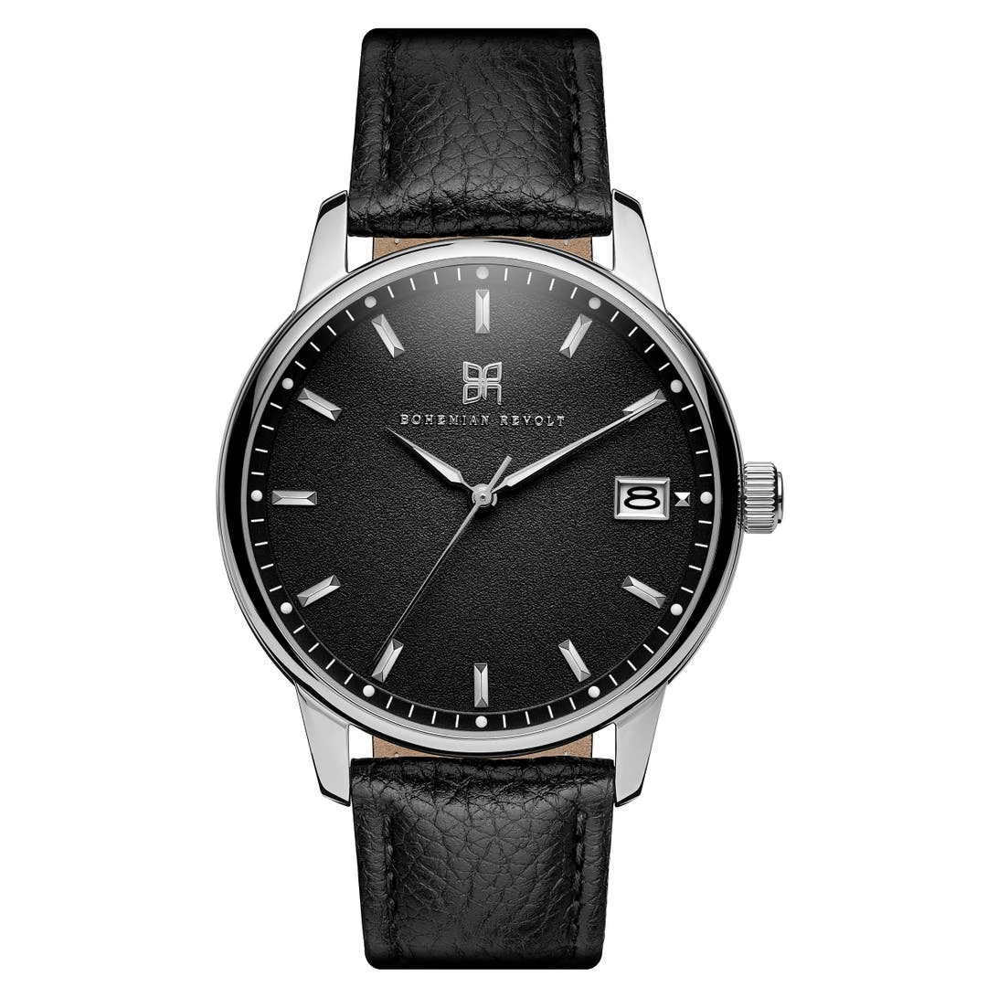 Son boîtier en acier inoxydable chirurgical abrite un mouvement japonais Miyota d’une grande fiabilité. Son cadran noir mat est équipé d’une discrète fenêtre à fonction calendrier située à 3 heures.