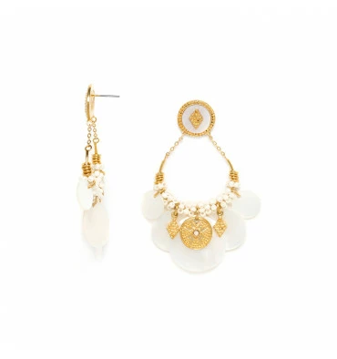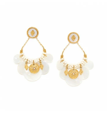 Boucles d’oreilles multi disques signées FRANCK HERVAL ornées de Nacre.