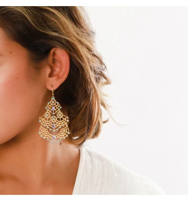 Boucles d’oreilles crochets dentelles signées FRANCK HERVAl. Découvrez la nouvelle collection ARIANE inspirée de la ligne Céline, ces nouvelles créations au colorama contrasté de bleus et de verts, mais tout aussi pétillantes de joie. Tous les bijoux femme de la collection Ariane sont conçus à partir de la technique 3D, ce qui permet d’obtenir des détails qui allient autant de finesse que de légèreté.