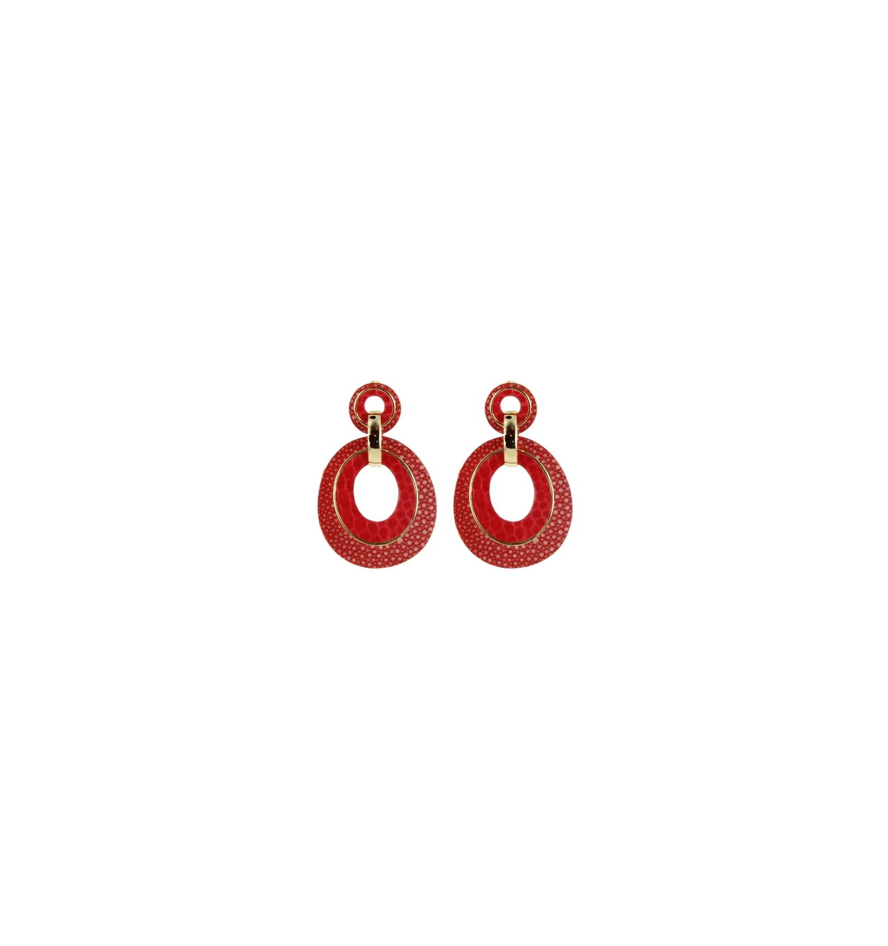 Boucles d’oreilles signées BARONG BARONG composées de Cuir rouge.