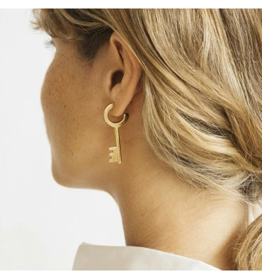 Boucles d’oreilles clé signées CXC composées d’une tige et sa puce pour l’attache. De cette tige s’inscrit une pièce en forme de grande clé très design.