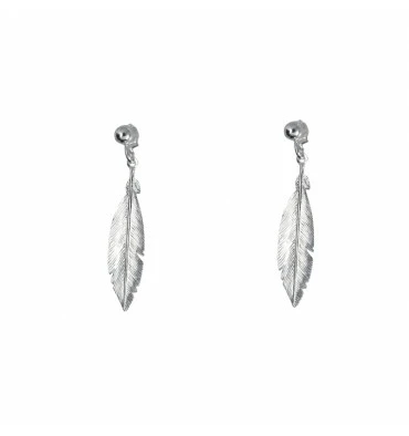 Boucles d’oreilles signées CANYON d’une puce ronde et d’une plume pendante en argent.
