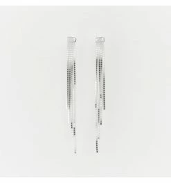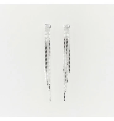 Boucles d’oreilles longues argent signées CANYON composées de chaînettes ornées de micro cubes.