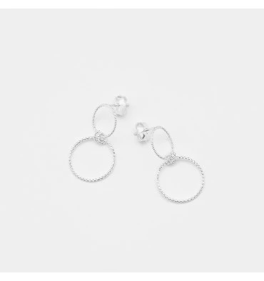 Boucles d’oreilles argent signées CANYON ornées de deux ronds entrelacés.