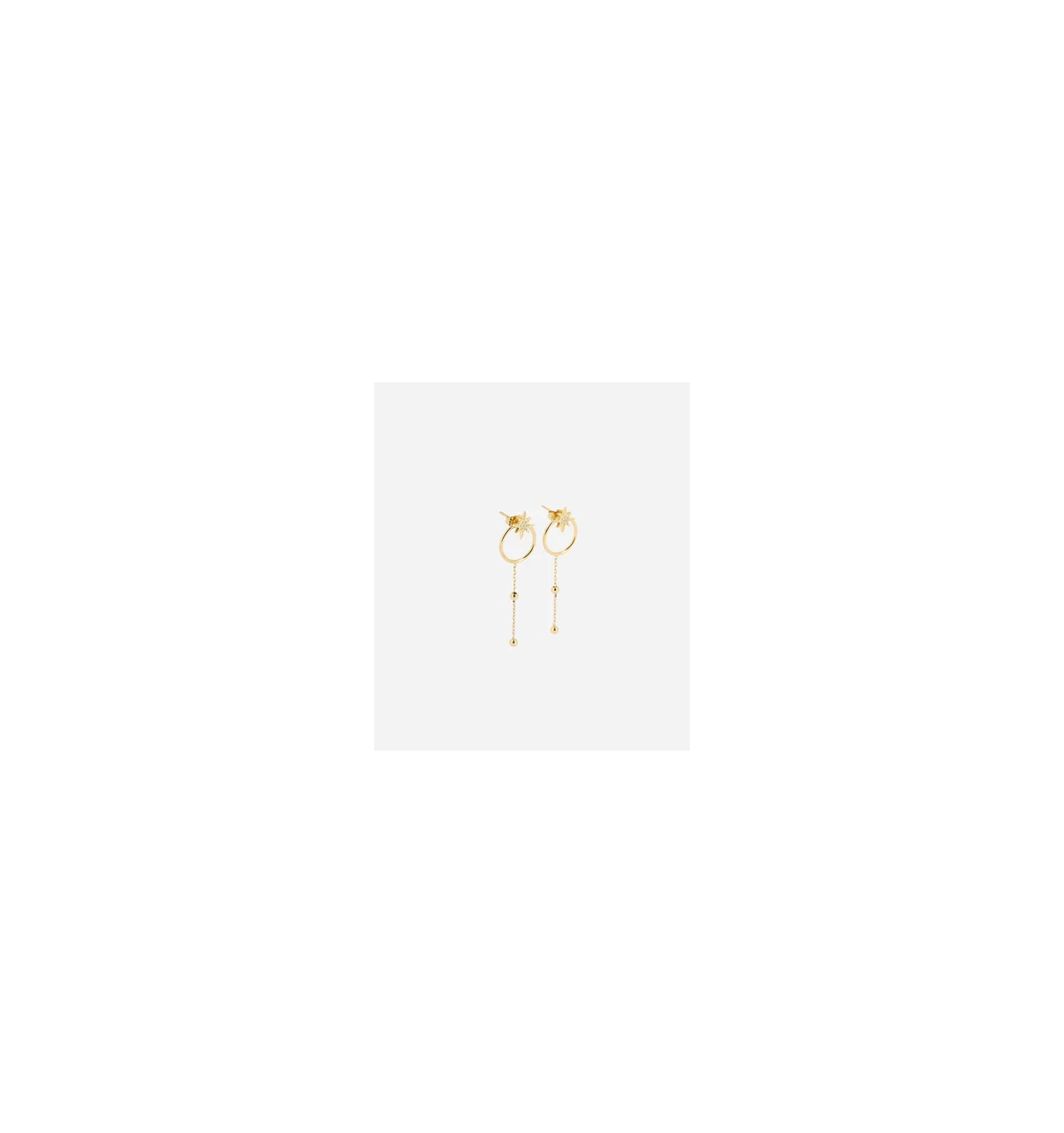 Boucles d’oreilles Flash signées ZAG Bijoux composées de deux parties est formées d’un cercle orné d’une étoile en zirconium, et d’une autre partie pendante avec des petites boules en acier doré.