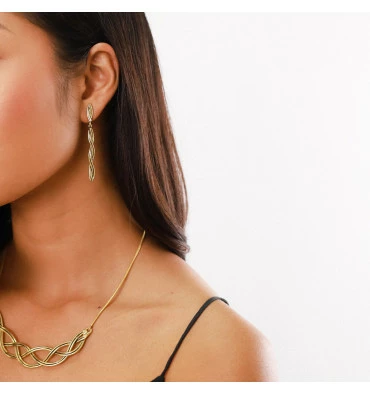 Boucles d’oreilles longues dorées signées ORI TAO bijoux.