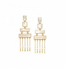 Composition de la ligne: Étain, Nacre Blanche, Perles De Culture, Swarovski, Métal doré à l’or fin sans nickel et traité contre les allergies.
