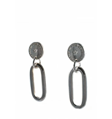 Boucles d’oreilles or et argent signées SECRET DE CUIR ornées d’un maillon.