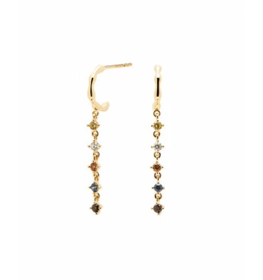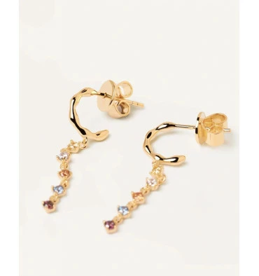 Boucles d’oreilles Sage signées PDPAOLA au design caractérisé par les cinq pierres protagonistes colorées qui le décorent. L’argent sterling 925 avec un placage d’or 18k est combiné à du bleu saphir corindon, de la rhodolite, du jaune d’or, du blanc pur et des teintes champagne qui font de la pièce un bijou délicat, reprenant la beauté naturelle de la faune.