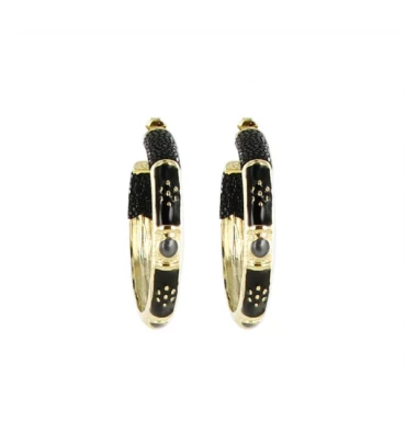 Créoles signées BARONG BARONG ornées de cuir noir.