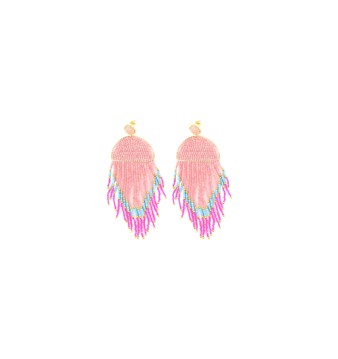 Boucles d’oreilles signées BARONG BARONG composées de Cuir et de Pierres semi précieuses roses.