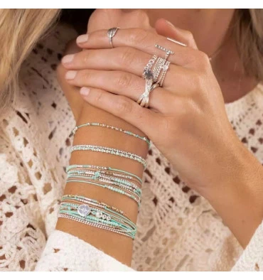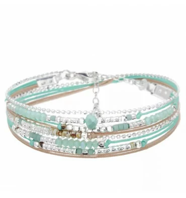 Bracelet 2 tours Atlanta signé DORIANE bijoux. Craquez pour le Bracelet Atlanta Turquoise Beige Léopard ! Ses Cordons Turquoise et Beiges sont résistants et vous accompagneront tout au long de la saison. Ce Bracelet Multi-Tours se compose également d’une Perle de Verre Centrale Turquoise de 4 mm, de Perles en Miyuki Léopard, et de Perles en Argent 925 Facettées.