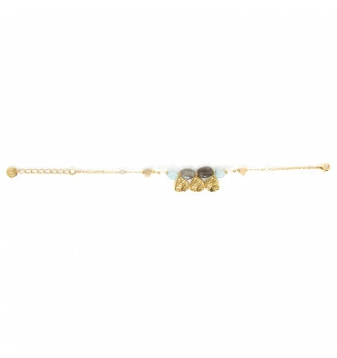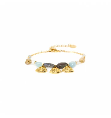 Composition de la ligne : Aigue Marine, Labradorite, Laiton, Perles De Culture, Métal doré à l’or fin sans nickel et traité contre les allergies.