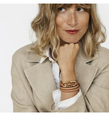 Composition : Cuir camel, Plaqué or sans nickel et traité contre les allergies.