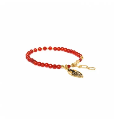 Composition de la ligne : Agate Rouge, Nacre Noire, Laiton, Métal doré à l’o fin sans nickel et traité contre les allergies.