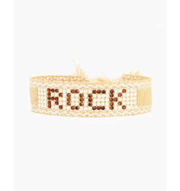 Un Bracelet à la fois original et élégant, qui s’inscrit parfaitement dans la tendance mode. Avec un message Rock écrit en cristaux de luxe et orné de mini cabochons pour un style toujours plus étincelant !