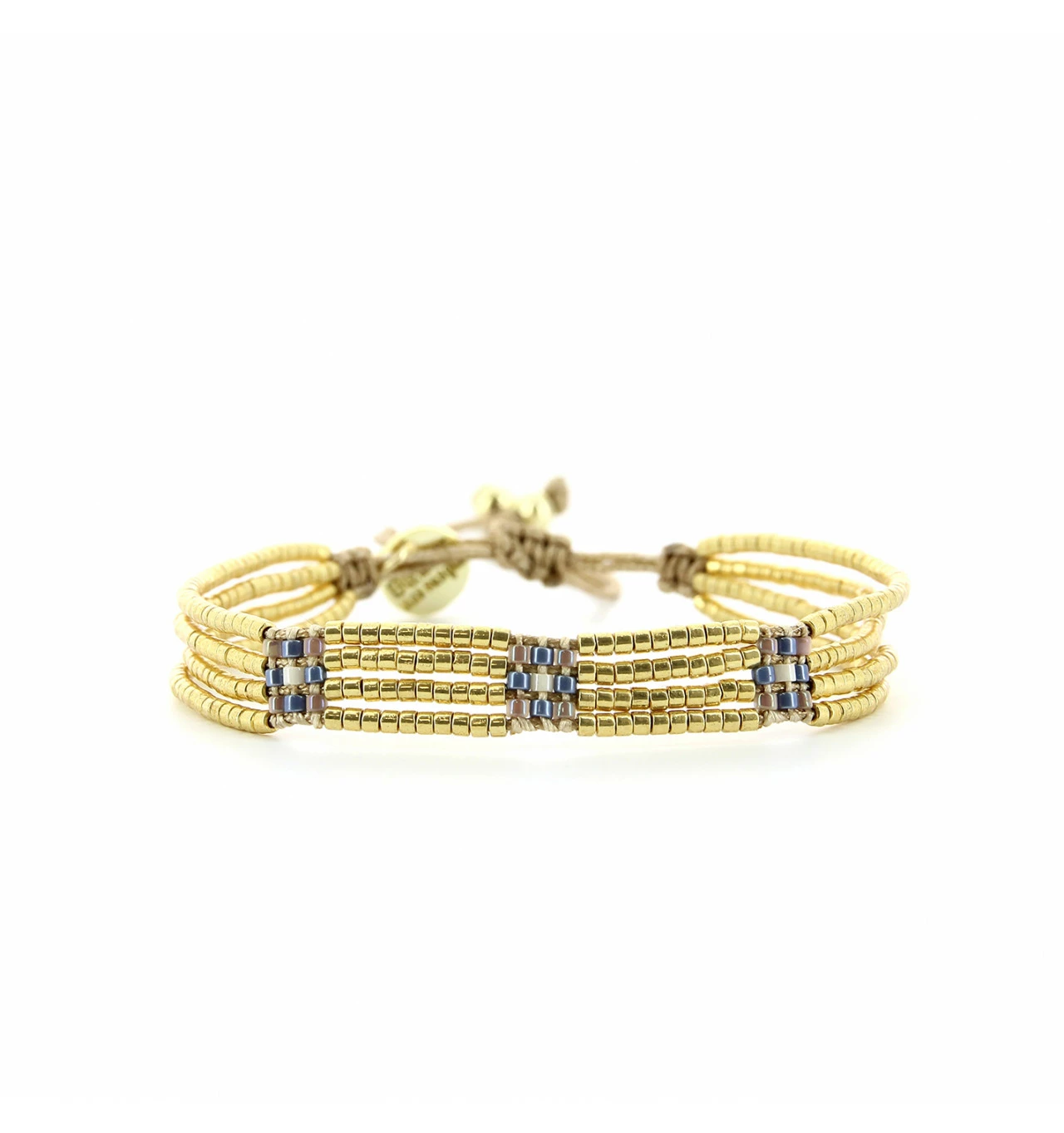 Composition : Laiton doré à l’or fin, Pépites dorées, Perles Miyuki dorées à l’or fin, Cristal.