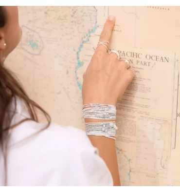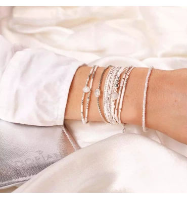 Bracelet Cassis Multi tours signé DORIANE bijoux. Ce Bracelet Cassis Blanc Opaline Trois Tours se compose de Cordons Blancs, de Perles de Verre Blanches de 1 mm et d’une Pierre Semi-Précieuse Carrée en Opaline. L’Opaline est une Pierre Bénéfique, calmante et anti-stress.