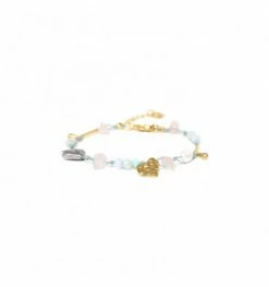 Composition de la ligne : Calcédoine Bleue, Étain, Jade, Perles De Culture, Quartz Rose, Métal doré à l’or fin sans nickel et traité contre les allergies.