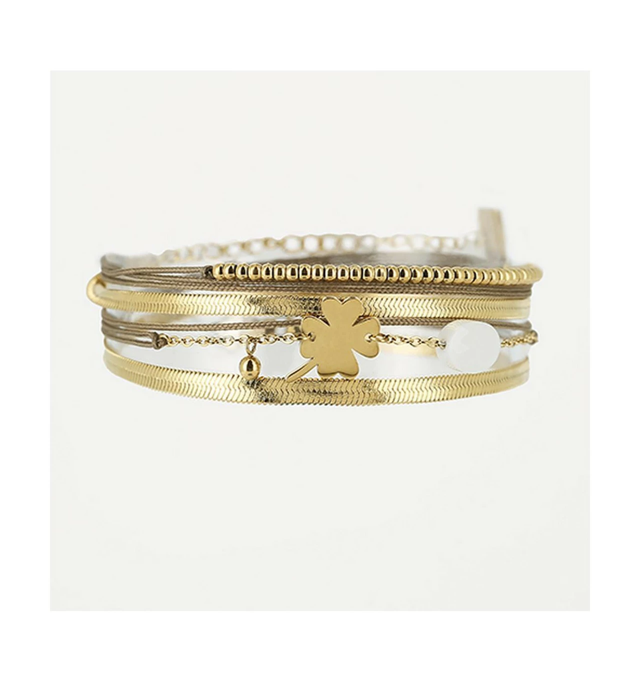 Un motif de trèfle est également attaché sur le cordon donnant à ce bracelet une allure de talisman protecteur.