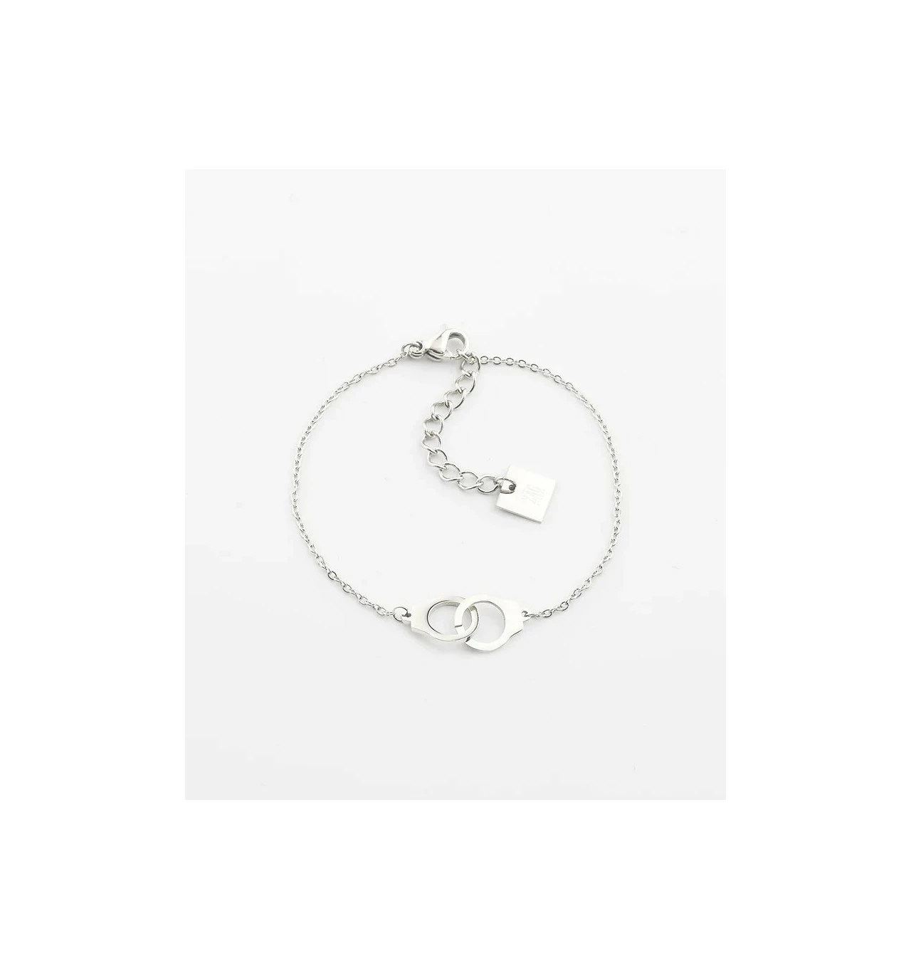 Bracelet Cuff signé ZAG Bijoux lequel des petites menottes sont finement attachées.