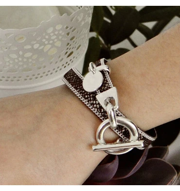 Bracelet double tours en cuir façon serpent signé SECRET DE CUIR.