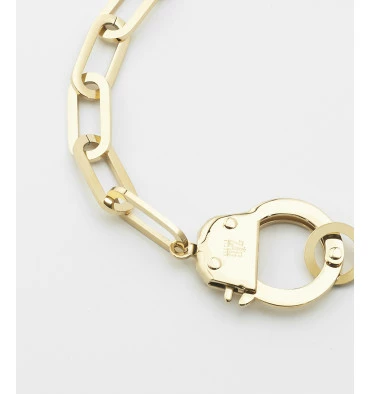 Bracelet Hook signé ZAG Bijoux composé de maillons en acier doré à l’or fin terminé d’un fermoir “menotte”.