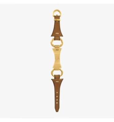 Bracelet en cuir camel signé CXC orné d’une plaque centrale.
