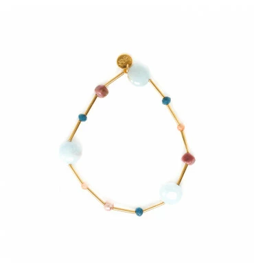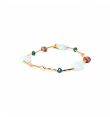 Composition de la ligne : Aigue Marine, Amazonite, Jade, Laiton, Perles De Culture, Rhodonite, Métal doré à l’or fin sans nickel et traité contre les allergies.