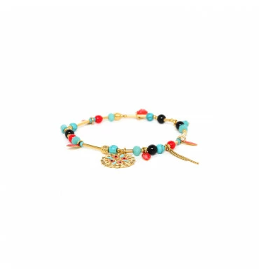 Composition de la ligne : Howlite, Agate, Métal doré à l’or fin sans nickel et traité contre les allergies.