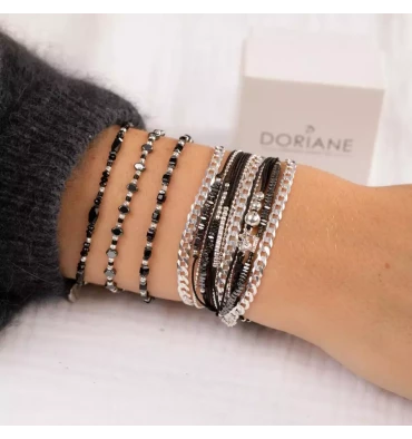 Bracelet Extensible signé DORIANE bijoux. Ce Bracelet Élastique se compose de Perles en Argent 925 ciselées et diamantées, de Perles Noires Carrées en Miyuki, de petites Perles en Hématite et d’un élastique très Résistant. Ce Bracelet Made in France a été fabriqué dans l’Atelier DORIANE près de Bandol. Complétez votre poignet de saison en adoptant le Bracelet Elastique Miyuki Carré Noir Petites Hématites.