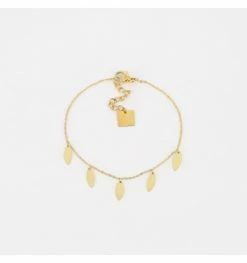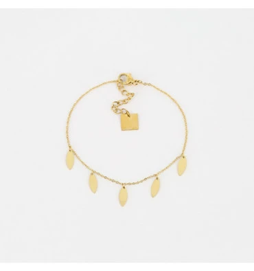 Bracelet Flora signé ZAG Bijoux composé de petites pampilles plates en métal imitant une feuille de thé.