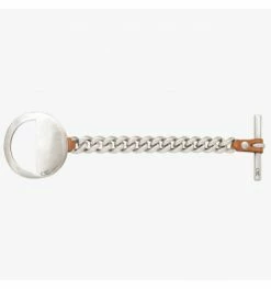 Bracelet gourmette signé CXC composé d’une chaine à maillons plats, d’une boucle ronde d’un diamètre 4.7 cm et de cuir camel.