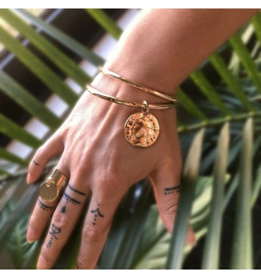 Bracelet jonc signé SECRET DE CUIR orné d’un César.