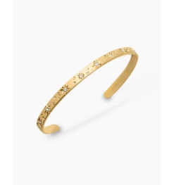 Finesse, élégance et originalité caractérisent ce Jonc. Avec ses cristaux de luxe placés au cœur de petites étoiles gravées dans le métal doré, vous allez scintiller de mille feux.