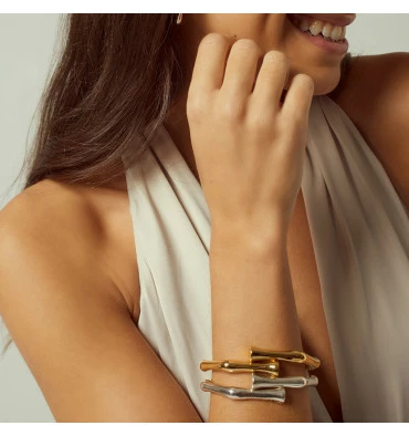 Bracelet Jonc signé CXC. Le ressort situé à l’arrière du bracelet permet de l’ajuster au poignet.