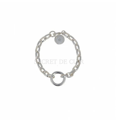 Bracelet signé SECRET DE CUIR composé de maillons ovales et d’une bouée centrale.