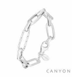 Bracelet signé CANYON France constitué d’une succession de maillons rectangulaires de différentes tailles dont certains sont facettés.