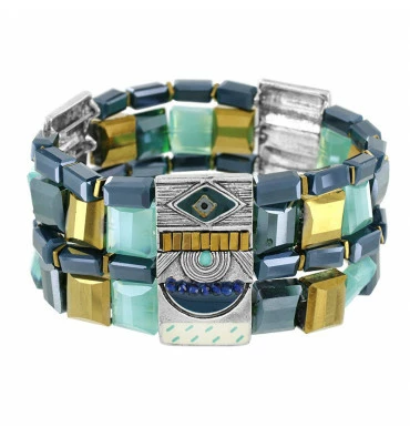 Composition : Résines colorées dont les motifs sont peints à la main, Perles en Verre, Métal sans nickel et traité contre les allergies.